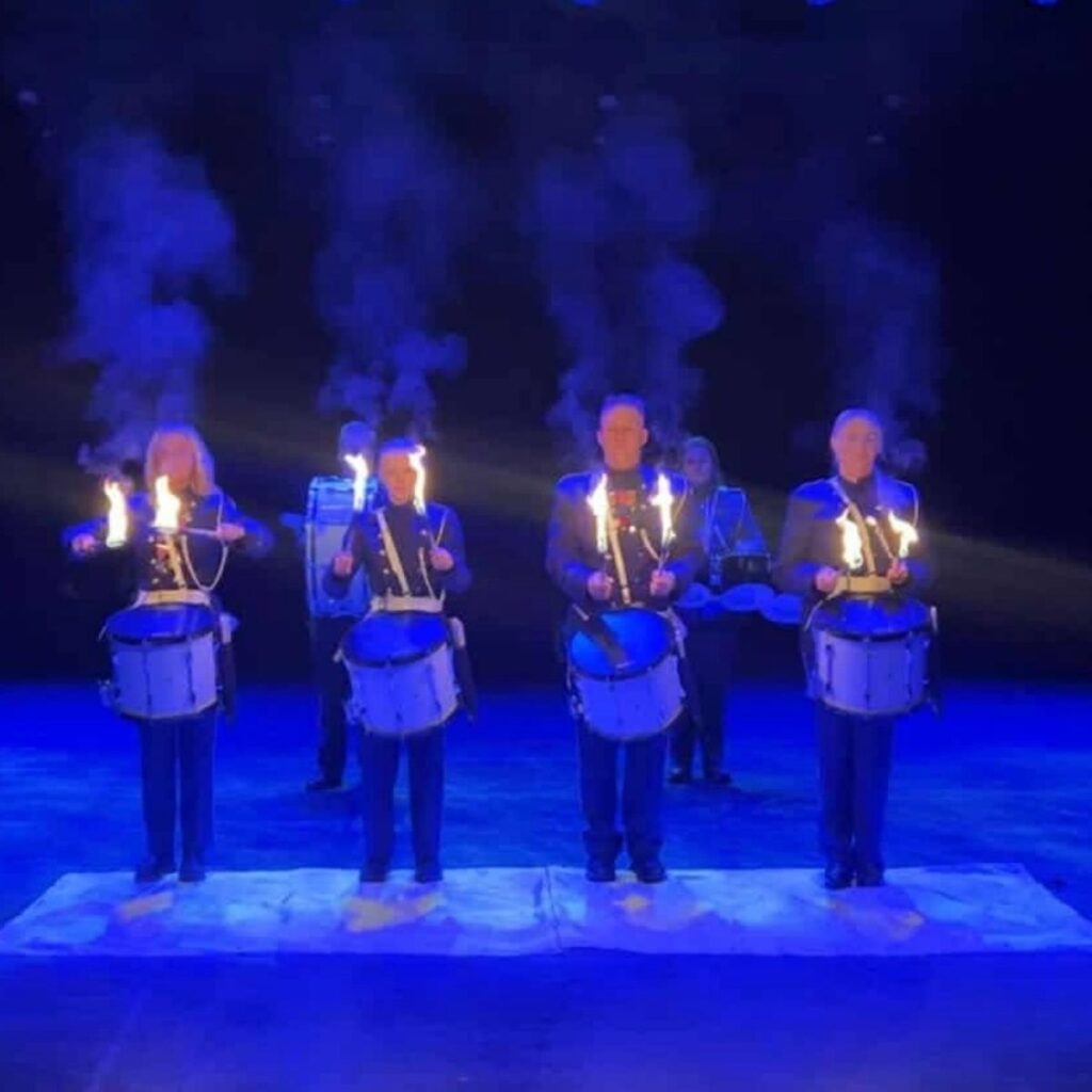 Tromming med flammer og lys